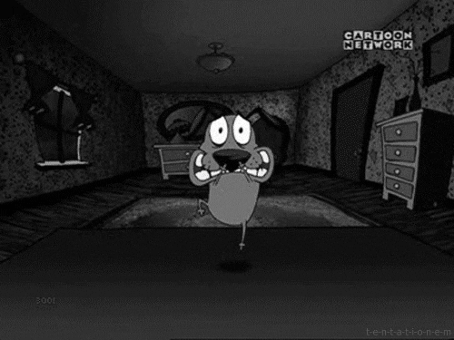 If you are a 90's baby I am sure you remember Courage the Cowardly Dog. A little pink dog who was always a nervous wreck, and had elderly owners. In this cartoon Courage is always afraid because he 1) lives in the middle of no where and 2) is always seeing "monsters". Now in the show he sees the monsters and is trying to protect his owners. Now the theory goes that Courage is actually just normal dog and when he sees the "Monsters" they are actually a just regular people. Since Courage's owners are elderly they don't get to take him out much so the outside world is scary to him. So anyone new to his is scary since he doesn't know about the outside world.
